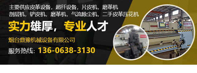 煙臺鼎豫機械設備有限公司位于山東省煙臺市芝罘區(qū)楚玉路238號泰和工業(yè)園,我公司主要經(jīng)營皮革機械設備,超纖設備及配件的生產(chǎn),銷售。我們有好的產(chǎn)品和專業(yè)的銷售和技術(shù)團隊,主要供應皮革設備,超纖設備,片皮機,磨革機,剖層機,鏟皮機,磨革機,氣流除塵機,二手皮革壓花機。我們具有專業(yè)維修國內(nèi)外各種型號精密片皮機的技術(shù)和能力,承攬大中小維修機械的業(yè)務。定制各種型號帶刀、砂輪等。